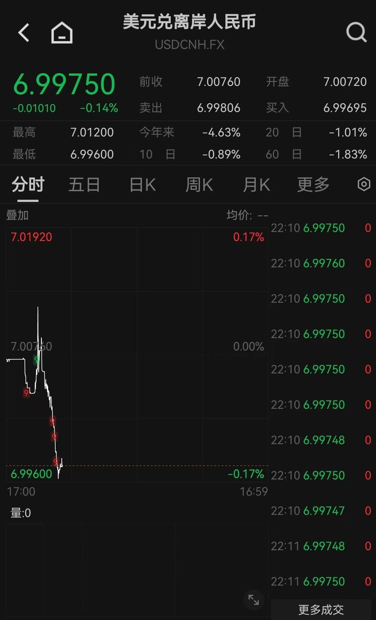 此外,在岸东说念主民币对好意思元升破7.01关隘,创2024年9月以来新高,年内累计增值4%。